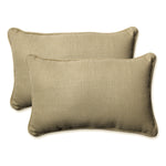 Bring neutral charm and a clean look to your porch or patio with this set of two outdoor lumbar pillows. In sandy shades of taupe, their linen textured fabric coordinates easily with virtually any color of decor. Additional features of these outdoor lumbar pillows include self welt cords for a clean finish and recycled polyester fiber fill with sewn seam closures. Also suitable for indoor use.