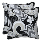 Create a welcoming new style for your patio or porch with this set of two bold and beautiful outdoor throw pillows. Their elegant floral pattern is modern in soothing shades of gray and taupe set against a black ground. Additional features of these outdoor throw pillows include black coordinating welt cords for a beautiful finish and recycled polyester fiber fill with sewn seam closures. Also suitable for indoor use.
