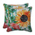 Bold bursts of sunflowers pop from this set of two outdoor throw pillows creating a refreshing look for your outdoors. Substantial blooms and foliage in vivid shades of yellow, orange, green, blue and pink pop from the crisp white ground. A soft distressing adds artist-intended imperfections and character. Additional features of these outdoor throw pillows include coordinating welt cords in an off-white natural for a clean finish and recycled polyester fiber fill with sewn seam closures. Also suitable for indoor use.