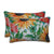 Bold bursts of sunflowers pop from this set of two outdoor lumbar pillows creating a refreshing look for your outdoors. Substantial blooms and foliage in vivid shades of yellow, orange, green, blue and pink pop from the crisp white ground. A soft distressing adds artist-intended imperfections and character. Additional features of these outdoor lumbar pillows include coordinating welt cords in an off-white natural for a clean finish and recycled polyester fiber fill with sewn seam closures. Also suitable for indoor use.