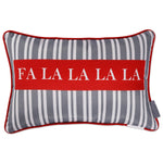 Decorate for the holidays with the Pillow Perfect Christmas Outdoor/Indoor Reversible Lumbar Throw Pillow in Tis the Season. Set on a gray ground, the front features the classic saying "Tis the season to be jolly", and on the reverse side, "Fa La La La La La" is printed on a simple gray and white stripe. Thanks to its UV rating, the pillow can be displayed on your porch, patio, or deck. The plush recycled polyester fill will hold its shape so you can enjoy it year after year. Spot clean as needed using mild detergent and let air dry.