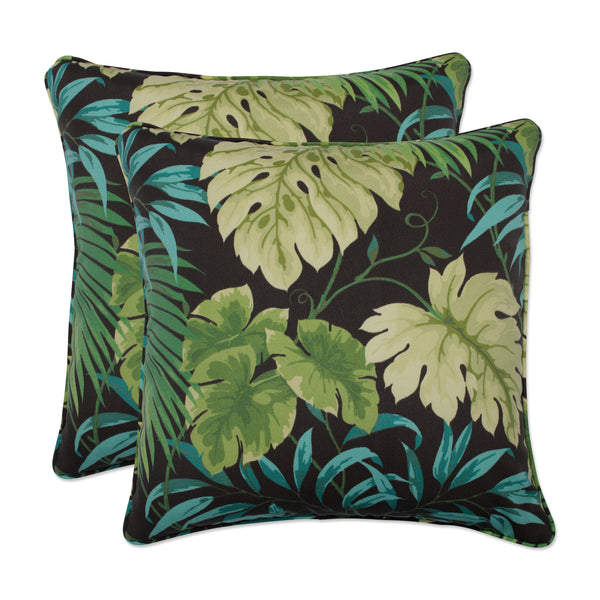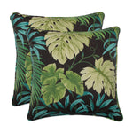 Create the look of an exotic island paradise with the bold tropical pattern of this set of two outdoor decorative pillows. Sprawling palm fronds and leafy vines in multiple shades of green are set on a dark brown background. The polyester fabric is fade-resistant, perfect for a patio, deck or pool area. Additional features of these outdoor decorative pillows include self welt cords for a beautiful finish and recycled polyester fiber fill with sewn seam closures. Also suitable for indoor use.