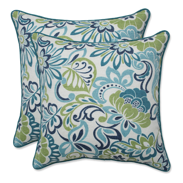 The leaves, blooms and paisley pattern of this set of two outdoor throw pillows bestow elegance in your outdoor oasis. In harmonious shades of blue and green, the design is set on an off-white ground. Their textural linen fabric is fade resistant. Additional features of these outdoor throw pillows include coordinating blue welt cords for a clean finish and recycled polyester fiber fill with sewn seam closures. Also suitable for indoor use.