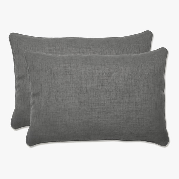 Revamp the style of your outdoor escape with the eye-catching, urban contemporary appeal of this set of two outdoor oversized lumbar pillows. Their enduring, linen textured polyester fabric is in a solid shade of on-trend gray, which embodies simplicity and versatility. Additional features of these outdoor oversized lumbar pillows include self welt cords for a clean finish and recycled polyester fiber fill with sewn seam closures. Also suitable for indoor use.