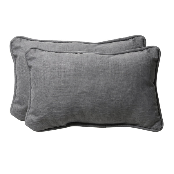 Revamp the style of your outdoor escape with the eye-catching, urban contemporary appeal of this set of two outdoor lumbar pillows. Their enduring, linen textured polyester fabric is in a solid shade of on-trend gray, which embodies simplicity and versatility. Additional features of these outdoor lumbar pillows include self welt cords for a clean finish and recycled polyester fiber fill with sewn seam closures. Also suitable for indoor use.