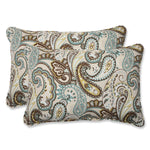 Popular paisley delivers elegance in the detailed pattern of this set of two must-have outdoor oversized lumbar pillows. Set on a natural ground and ideal for a relaxed feel, their design is in soothing tones of blue, brown and yellow. Additional features of these outdoor oversized lumbar pillows include self welt cords for a clean finish and recycled polyester fiber fill with sewn seam closures. Also suitable for indoor use.