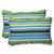 Magnificent stripes create the look of a charming summer escape with this set of two outdoor lumbar pillows. Their pattern has fun stripes with varying widths in refreshing shades of blue, green, yellow and white. Made of fade-resistant polyester fabric, they're perfect for a patio or sunroom. Additional features of these outdoor lumbar pillows include self welt cords for a clean finish and recycled polyester fiber fill with sewn seam closures. Also suitable for indoor use.