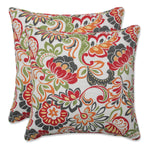 Bring elegant Jacobean style to your patio with this set of two outdoor decorative pillows. Their floral print pattern in shades of red, orange, green and dark gray is set on an off-white ground. Fabric is textured and fade resistant. Additional features of these outdoor decorative pillows include self welt cords for a clean finish and recycled polyester fiber fill with sewn seam closures. Also suitable for indoor use.