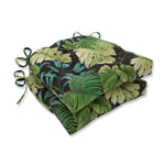 Create the look of an exotic island paradise with the bold tropical pattern of this set of two outdoor tufted chair pads. Sprawling palm fronds and leafy vines in multiple shades of green are set on a dark brown background. The polyester fabric is fade-resistant, perfect for a patio, deck or pool area. Additional features of these outdoor tufted chair pads include 14" ties to secure the cushions to your furniture and recycled polyester fiber fill with sewn seam closures. Also suitable for indoor use in kitchen and dining areas.