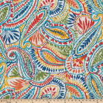 Enjoy gorgeous artistic flair with the hand painted style of this brightly colored pattern. Wild fiesta shades sprawl across crisp white fabric in gorgeous distressed colors, giving your rooms a fun summer style.