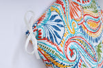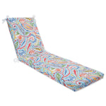 Give your patio or porch an intense splash of color with the hot paisley fabric pattern of this stylish outdoor oversized chaise lounge cushion. Its bold print design is set on a white ground in bright shades of blue, green, orange, red and yellow, perfect spicing up your outdoor ensemble. Made of 100% polyester fade-resistant fabric. Additional features of this outdoor oversized chaise lounge cushion include 14" ties to secure the cushion to your furniture, square corners and recycled polyester fill with a sewn seam closure.