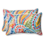 Give your patio or porch an intense splash of color with the hot paisley fabric pattern of this stylish set of two outdoor lumbar pillows. Their bold print design is set on a white ground in bright shades of blue, green, orange, red and yellow, perfect spicing up your outdoor ensemble. Made of 100% polyester fade-resistant fabric. Additional features of these outdoor lumbar pillows include white coordinating welt cords for a beautiful finish and recycled polyester fiber fill with sewn seam closures. Also suitable for indoor use.