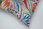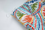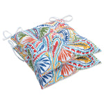 Give your patio or porch an intense splash of color with the hot paisley fabric pattern of this stylish set of two outdoor tufted chair cushions. Their bold print design is set on a white ground in bright shades of blue, green, orange, red and yellow, perfect spicing up your outdoor ensemble. Made of 100% polyester fade-resistant fabric. Additional features of these outdoor tufted chair cushions include 14" ties to secure the cushions to your furniture and recycled polyester fiber fill with sewn seam closures. Also suitable for indoor use.