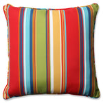 Give your patio a lively, festival-like style with the flattering awning stripes of this outdoor floor pillow. Ideal for brightening dark areas, its uneven striped pattern is in hot shades of red, yellow, green and blue. Made of 100% polyester fade-resistant fabric. Additional features of this outdoor floor pillow include a self welt cord for a clean finish and recycled polyester fiber fill with a sewn seam closure. Also suitable for indoor use.