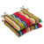 Give your patio a lively, festival-like style with the flattering awning stripes of this set of two outdoor tufted chair cushions. Ideal for brightening dark areas, their uneven striped pattern is in hot shades of red, yellow, green and blue. Made of 100% polyester fade-resistant fabric. Additional features of these outdoor tufted chair cushions include 14" ties and recycled polyester fiber fill with sewn seam closures. Also suitable for indoor use.