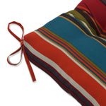 See your patio in the charming new style of stripes with this large outdoor bench cushion. In a medley of colorful shades, including teal, red, green and orange, its striped pattern delivers a modern vibe. Made of 100% polyester fade-resistant fabric. Additional features of this large outdoor bench cushion include tufted detailing, 14" ties and recycled polyester fiber fill with a sewn seam closure. Also suitable for indoor use.