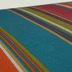 See your patio in the charming new style of stripes with this set of two large outdoor tufted chair pads. In a medley of colorful shades, including teal, red, green and orange, their striped pattern delivers a modern vibe. Made of 100% polyester fade-resistant fabric. Additional features of these large outdoor tufted chair pads include 14" ties to secure the cushions to your furniture and recycled polyester fiber fill with sewn seam closures. Also suitable for indoor use in kitchen and dining areas.