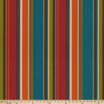 Brighten your rooms with deep summer shades in bold awning style stripes. Hot shades of brick red, burnt orange, grass green, and rich teal set off this uneven stripe creating a lively feeling.