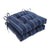 Add a classy touch to your porch or patio with the sharp look of this set of two large outdoor tufted chair pads. With a linen-like fabric texture, their bold stripes are in two alternating shades of blue and highlighted with thin white stripes. Made of 100% polyester fade-resistant fabric. Additional features of these large outdoor tufted chair pads include 14" ties to secure the cushions to your furniture and recycled polyester fiber fill with sewn seam closures. Also suitable for indoor use in kitchen and dining areas.
