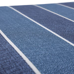 Add a classy touch to your porch or patio with the sharp look of this outdoor oversized chaise lounge cushion. With a linen-like fabric texture, its bold stripes are in two alternating shades of blue and highlighted with thin white stripes. Made of 100% polyester fade-resistant fabric. Additional features of this outdoor oversized chaise lounge cushion include 14" ties to secure the cushion to your furniture, square corners and recycled polyester fill with a sewn seam closure.
