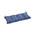 Add a classy touch to your porch or patio with the sharp look of this outdoor swing/bench cushion. With a linen-like fabric texture, its bold stripes are in two alternating shades of blue and highlighted with thin white stripes. Made of 100% polyester fade-resistant fabric. Additional features of this outdoor swing/bench cushion include tufted detailing, 14" ties and recycled polyester fiber fill with a sewn seam closure. Also suitable for indoor use.