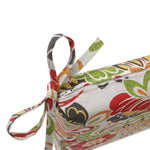 Bring elegant Jacobean style to your patio with this outdoor bench cushion. Its floral print pattern in shades of red, orange, green and dark gray is set on an off-white ground. Fabric is textured and fade resistant. Additional features of this outdoor bench cushion include square corners, 14" ties and recycled polyester fill with a zippered closure for easy removal. Also suitable for indoor use.