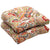 Bring elegant Jacobean style to your patio with this set of two outdoor tufted wicker chair cushions. Their floral print pattern in shades of red, orange, green and dark gray is set on an off-white ground. Fabric is textured and fade resistant. Additional features of these outdoor tufted wicker chair cushions include recycled polyester fiber fill and sewn seam closures. Also suitable for indoor use.