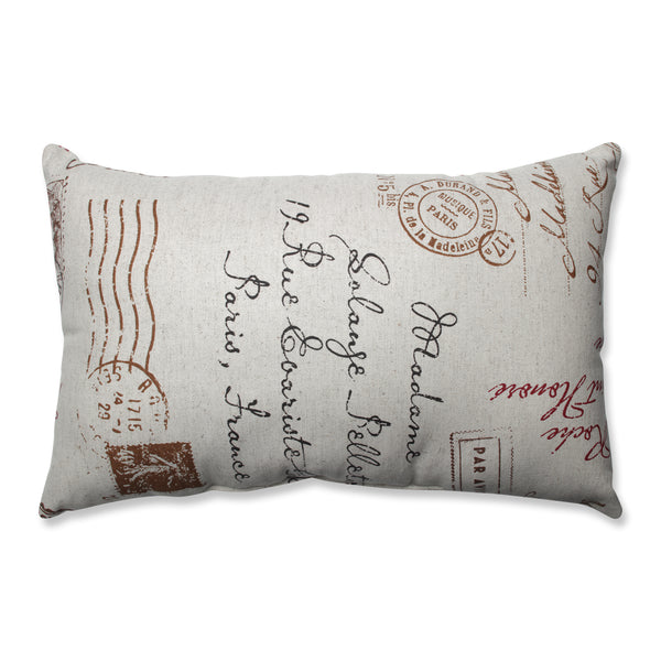 Bring the charm and panache of France to your home with this beige and red French laundry lumbar pillow. With the black and red script and post stamp-inspired print on the front, this super-chic cotton-blend, plush pillow will give your living space unmatched sophistication and comfort. This time-honored pattern complements modern and contemporary decor beautifully and is great for mixing with other prints and patterns. Additional features of this lumbar pillow include a knife edge seam for a clean finish and recycled polyester fiber fill with a sewn seam closure.