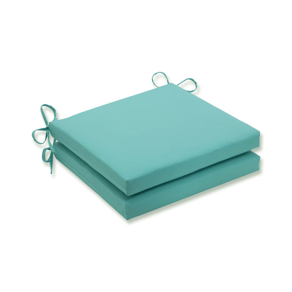 Create a bright, cool escape with this set of two outdoor oversized seat cushions. With a simple look, the radiance of the refreshing shade of aqua fabric delivers fresh style with a sense of calmness. Made of 100% polyester. Additional features of these outdoor oversized seat cushions include square corners, 14" ties and recycled polyester fill with zippered closures for easy removal. Also suitable for indoor use.