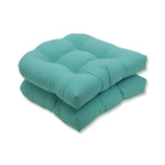 Create a bright, cool escape with this set of two outdoor wicker chair cushions. With a simple look, the radiance of the refreshing shade of aqua fabric delivers fresh style with a sense of calmness. Made of 100% polyester. Additional features of these outdoor tufted wicker chair cushions include recycled polyester fiber fill and sewn seam closures. Also suitable for indoor use.