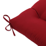 Magnificent red delivers a hot, new look to your patio through this outdoor bench cushion. It's simply elegant, made of rich textured fabric, which is durable and fade resistant. Additional features of this outdoor bench cushion include tufted detailing, 14" ties and recycled polyester fiber fill with a sewn seam closure. Also suitable for indoor use.