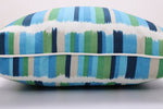 The stripes of Solar Stripe Azure Blue Green are classic, but with a twist. Watercolor brushstrokes in alternating shades of blue and green will look modern and chic at your outdoor dining table, lounging by the pool, or reading in your hammock. Perfect for ushering in the warm weather. Solar Stripe Azure Blue Green was created to be paired with a number of other Pillow Perfect patterns and solids and is available in a variety of pillow/cushion shapes and sizes.