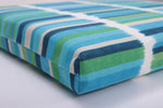 The stripes of Solar Stripe Azure Blue Green are classic, but with a twist. Watercolor brushstrokes in alternating shades of blue and green will look modern and chic at your outdoor dining table, lounging by the pool, or reading in your hammock. Perfect for ushering in the warm weather. Solar Stripe Azure Blue Green was created to be paired with a number of other Pillow Perfect patterns and solids and is available in a variety of pillow/cushion shapes and sizes.