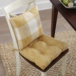 Enjoy a fresh, updated look with this set of two tufted chair pads. Their woven linen-like slub delivers a rich textural look that is sure to become everyone's favorite. It is space dyed to give the yarn a unique, multicolored effect. These solid chair pads are an easy choice because they coordinate with any decor from traditional to contemporary. Additional features include 14-inch ties to secure the cushions to your furniture, recycled polyester fiber fill and sewn seam closures.