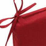 This set of two outdoor seat cushions features an on-trend red textured solid that easily transforms the look of any outdoor area with a bright splash of color. Their vibrance and timeless aura offers a fresh pop of color and a fabulous casual feel. Additional features of these outdoor seat cushions include rounded corners, 14" ties and recycled polyester fill with sewn seam closures. Also suitable for indoor use.