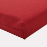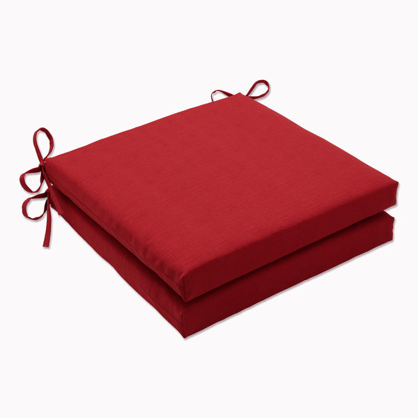 This set of two outdoor oversized seat cushions features an on-trend red textured solid that easily transforms the look of any outdoor area with a bright splash of color. Their vibrance and timeless aura offers a fresh pop of color and a fabulous casual feel. Additional features of these outdoor oversized seat cushions include square corners, 14" ties and recycled polyester fill with zippered closures for easy removal. Also suitable for indoor use.