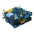 This set of two outdoor tufted chair pads features a large-scale floral printed in bright shades of blue, yellow and green. It will make a striking statement in any outdoor space. Additional features of these outdoor tufted chair pads include 14" ties to secure the cushions to your furniture and recycled polyester fiber fill with sewn seam closures. Also suitable for indoor use in kitchen and dining areas.