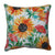 Bold bursts of sunflowers pop from this large outdoor floor pillow creating a refreshing look for your outdoors. Substantial blooms and foliage in vivid shades of yellow, orange, green, blue and pink pop from the crisp white ground. A soft distressing adds artist-intended imperfections and character. Additional features of this outdoor floor pillow include a coordinating welt cord in an off-white natural for a clean finish and recycled polyester fiber fill with a sewn seam closure. Also suitable for indoor use.