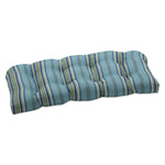 Easily transform porches and patios with this outdoor tufted loveseat cushion featuring a classic, yet modern, bold stripe. Crisp, tranquil shades of blue, green and natural are accented with a fine chevron printed in the ground, which creates added visual interest and uniqueness for this casual stripe. Additional features of this outdoor tufted loveseat cushion include recycled polyester fiber fill and a sewn seam closure. Also suitable for indoor use.