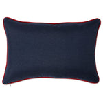 Celebrate America with the patriotic flair of this lumbar pillow. Skillfully appliqued and embroidered in red, white, & blue, the flag waves from a crisp white ground creating a three-dimensional effect. One of the most meaningful lines from "America the Beautiful" is embroidered and surrounded by a scattering of red and blue stars. Additional features include a solid red back, coordinating red welt cord for a clean finish, and a pillow insert containing recycled polyester fiber fill with a zipper closure.