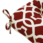 The highly attractive design of this large outdoor bench cushion grips your attention with elegance. On a deep shade of red, the interlocking white geometric pattern contrasts beautifully. Its durable fabric is fade-resistant. Additional features of this large outdoor bench cushion include tufted detailing, 14" ties and recycled polyester fiber fill with a sewn seam closure. Also suitable for indoor use.