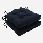Bring a sharp, polished look to your porch or patio with this set of two outdoor tufted chair pads. In a luxurious shade of indigo blue, their fade-resistant fabric has a beautiful linen texture that's inviting and easily complements other decor. Additional features of these outdoor tufted chair pads include 14" ties to secure the cushions to your furniture and recycled polyester fiber fill with sewn seam closures. Also suitable for indoor use in kitchen and dining areas.