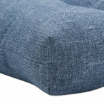 This outdoor bench cushion features a distinguished, textured solid. Printed in shades of blue, it easily coordinates with many patterns, colors and decor styles. A casual distressing adds artist-intended imperfections and character. Additional features of this outdoor bench cushion include tufted detailing, 14" ties and recycled polyester fiber fill with a sewn seam closure. Also suitable for indoor use.