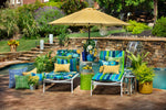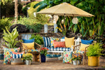 The sunny appeal of this outdoor floor pillow is perfect for creating a cheerful outdoor escape. With a dimensional look, its eye-catching off-white herringbone pattern is set against a lovely shade of yellow. Additional features of this outdoor floor pillow include a self welt cord for a beautiful finish and recycled polyester fiber fill with a sewn seam closure. Also suitable for indoor use.