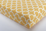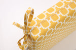 Update any outdoor area with this on-trend geometric patterned outdoor bench cushion. For a modern effect, its off-white linking pattern pops from a background that's in a shade of yellow. Fabric is durable and fade resistant. Additional features of this outdoor bench cushion include square corners, 14" ties and recycled polyester fill with a zippered closure for easy removal. Also suitable for indoor use.
