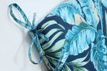 You may not be lying under the palms, but you can pretend you are with Tortola Midnight Blue. Featuring bold jungle leaves and delicate palm fronds in cool turquoise blues and greens on a navy blue ground, this print will look beautiful on your screened in porch, next to your pool, or under your head as you swing in your hammock. Tortola Midnight Blue was created to be paired with a number of other Pillow Perfect patterns and solids and is available in a variety of pillow/cushion shapes and sizes.