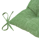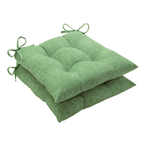 This set of two outdoor tufted chair cushions features a distinguished, textured solid. Printed in shades of green, they easily coordinate with many patterns, colors and decor styles. A casual distressing adds artist-intended imperfections and character. Additional features of these outdoor tufted chair cushions include 14" ties and recycled polyester fiber fill with sewn seam closures. Also suitable for indoor use.