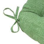 This set of two large outdoor tufted chair pads features a distinguished, textured solid. Printed in shades of green, they easily coordinate with many patterns, colors and decor styles. A casual distressing adds artist-intended imperfections and character. Additional features of these large outdoor tufted chair pads include 14" ties to secure the cushions to your furniture and recycled polyester fiber fill with sewn seam closures. Also suitable for indoor use in kitchen and dining areas.