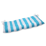 Fresh and bright aqua wonderfully contrasts with white on this plush outdoor tufted wrought iron loveseat cushion. Placed next to a pool or in a cabana, you'll love the bold color and how it instantly exudes a summer vibe. Additional features of this outdoor bench cushion include tufted detailing, 14" ties and recycled polyester fiber fill with a sewn seam closure. Also suitable for indoor use.