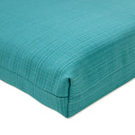 Introduce a gorgeous turquoise blue in your oasis with this outdoor oversized chaise lounge cushion. Its solid blue pattern will freshly accent any outdoor area with a peaceful aquatic feel. The durable polyester fabric has a linen-like texture and is fade resistant. Additional features of this outdoor oversized chaise lounge cushion include 14" ties to secure the cushion to your furniture, square corners and recycled polyester fill with a sewn seam closure.
